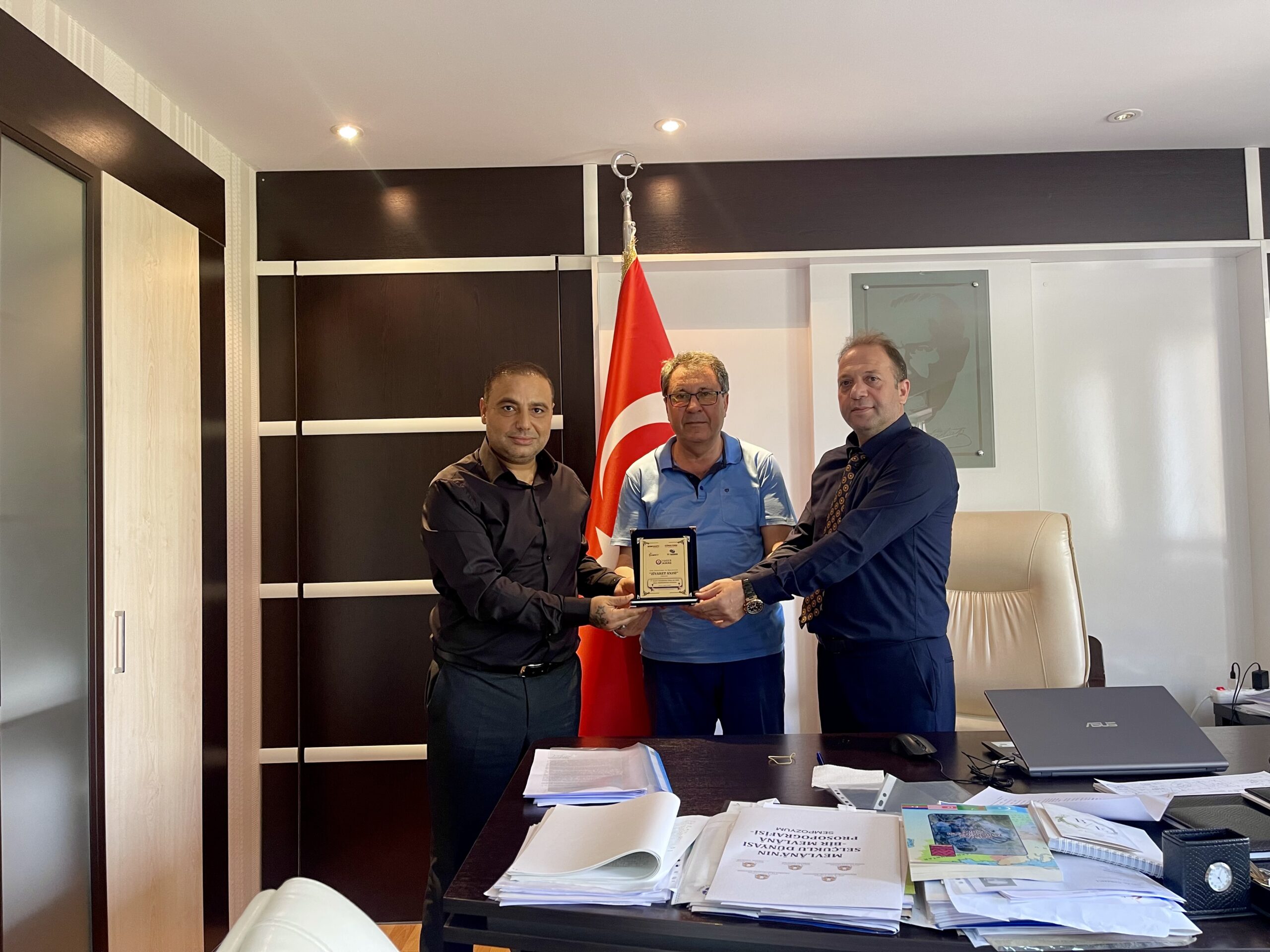 Son olarak, Konya Selçuklu Üniversitesi Edebiyat Fakültesi Dekanı Prof. Dr. Ali Temizel’i makamında ziyaret eden Aydoğan, nazik kabulleri için teşekkür ederek, ziyaret anısına kendisine bir plaket takdim etti.